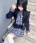 manaka(INGNI イオンモール高崎)のワンピース「チェック柄ボウタイシャツドッキングニットワンピース」を使ったコーディネート