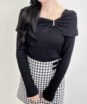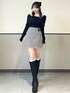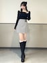 リボンデザインがポイントのブラックトップスに、千鳥柄のタイトミニを合わせた王道ガーリーコーデ🖤 ショート丈×ロングブーツのバランスでスタイルアップも叶う✨ 全体をモノトーンでまとめて、甘すぎず上品な印象に。 デートやおでかけにもぴったりな大人かわいい冬コーデです🤍