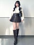 レザープリーツスカートにケーブルニットを合わせた、甘すぎない大人ガーリースタイル♡ ホワイト×ダークブラウンの配色で、冬らしい上品さとトレンド感を両立。 ロングブーツを合わせてスタイルアップ効果も抜群◎ デートにもお出かけにもおすすめのきれいめモードコーデです🕊️ Instagram@_mana1ng