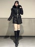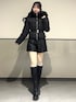 ふわっとボリュームのあるショートダウンに、レザーパンツを合わせたオールブラックコーデ🖤 ウエストベルト付きのシルエットで、スタイルアップも叶う冬の本命アウター✨ ロングブーツを合わせて脚長効果も抜群! ブラックトーンでも重たく見えないよう、肌見せバランスで抜け感をプラスしました🎶 Instagram@_mana1ng