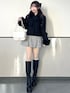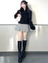 首元のリボンとフェイクファーが華やかで、 1枚で“冬のお嬢さん感”が出るアウタートップス。 袖口にもファーがあるので存在感たっぷりです♡ ミニ丈の千鳥格子スカートを合わせて、 ブラックの重さを軽く見せながらクラシカルに仕上げました。 足元はロングブーツでスタイルアップ効果◎ 白バッグで抜け感をつくることで、 モノトーンでも重く見えないのがポイントです。 冬のお出かけにもデートにもぴったりな、 大人可愛いガーリーコーデです🖤 Instagram@_mana1ng