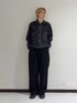 少しタイト目なデニムジャケットにスラックスを合わせたコーディネートになります。 オールブラックでこの秋などにぴったりです。 ぜひ。