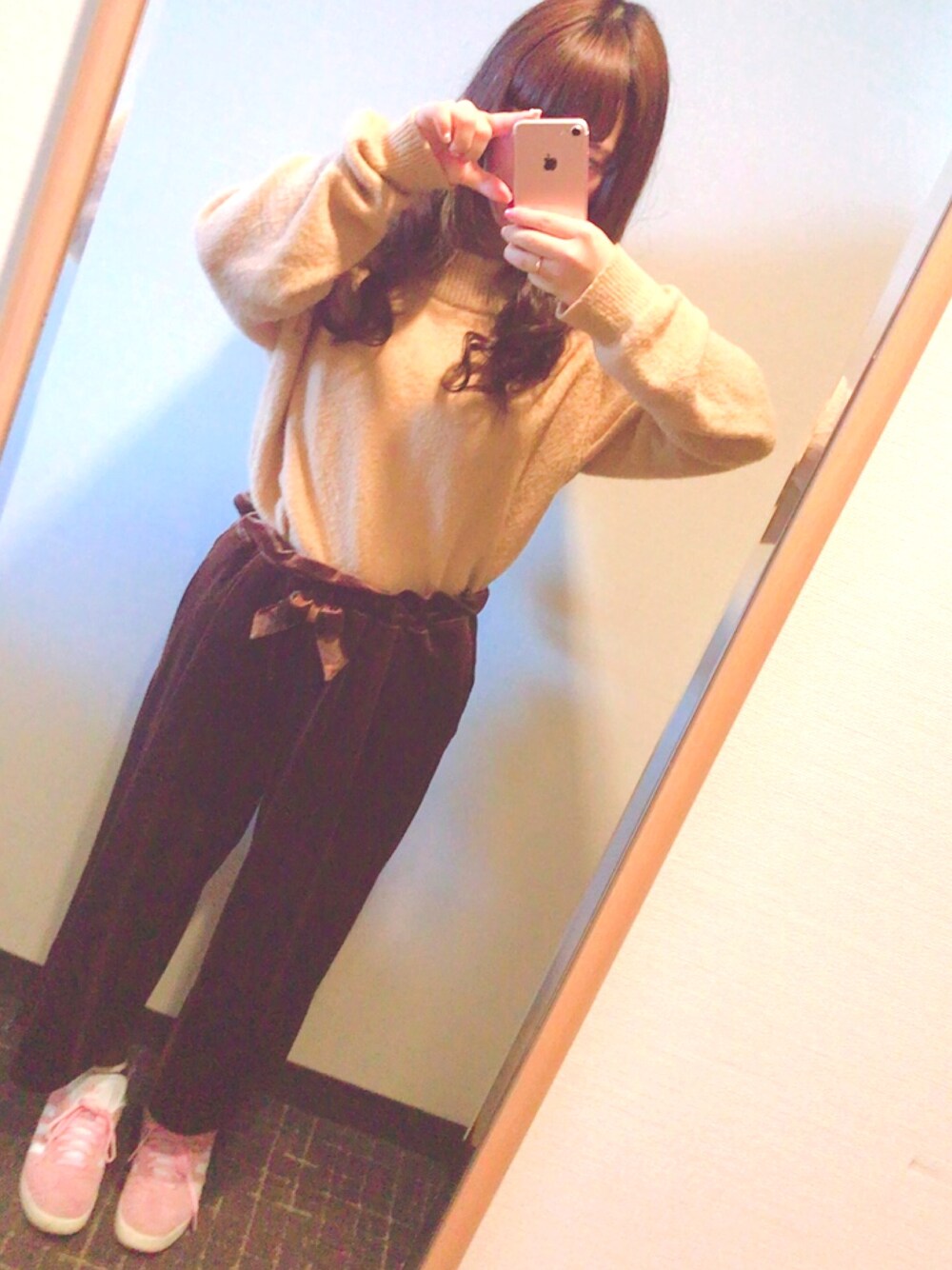 初めての投稿です♪ディズニーに行った時のコーデです!! シェリーメイの格好をしたかったので、ブラウン系でまとめました! コートは薄ピンクの物を着ました♪