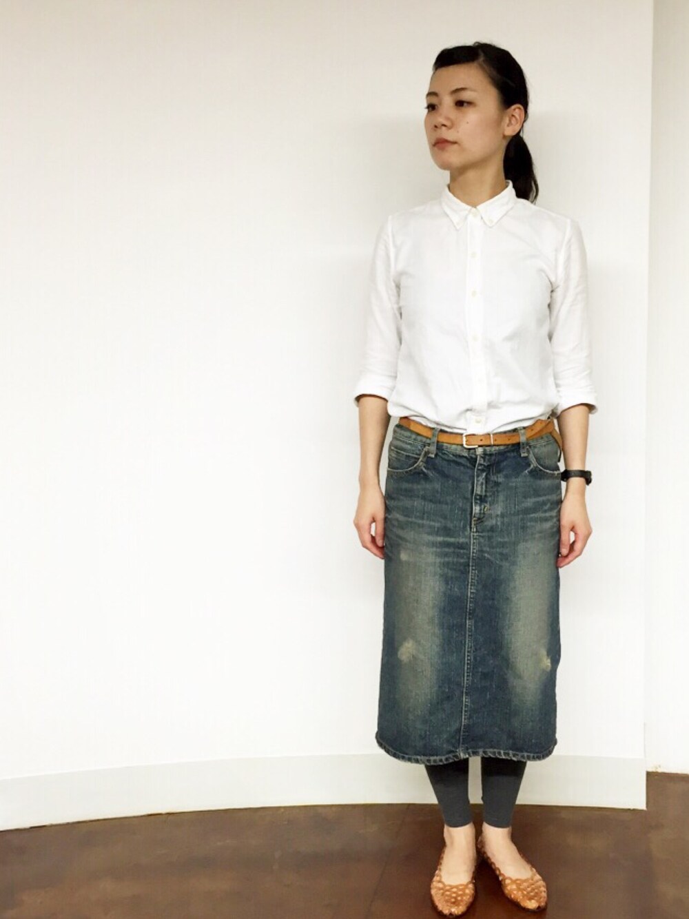 シンプルにシャツとデニムスカートです(^O^) シャツはGAPがお気に入り☺︎♡ 綿の目の荒い質感がいいです!