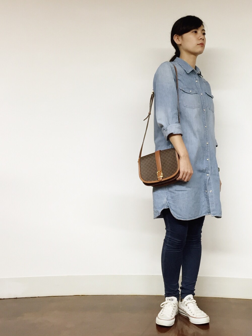 デニム オン デニムのコーディネートです。 秋にはブラウンのショルダーバックが欲しかったので、オールドのセリーヌをgetしました☺︎♡