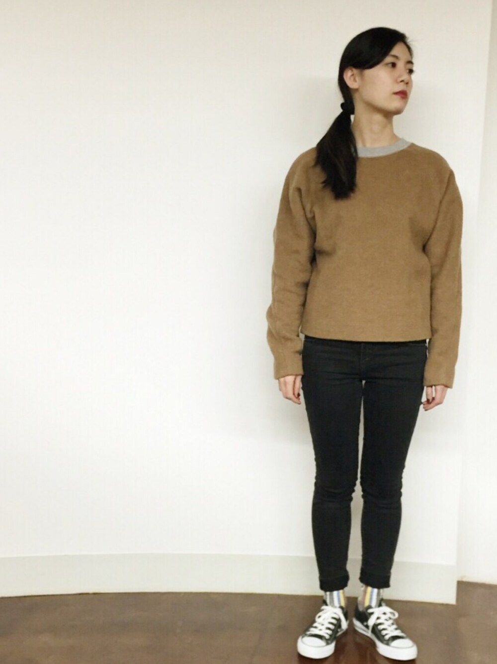 トップスが主役のコーディネート。 ショーシャギーのモコモコトップス☺︎ シルエットが抜群です! 色もお気に入りです。 トップスがビックリシルエットなので、下はタイトルに。