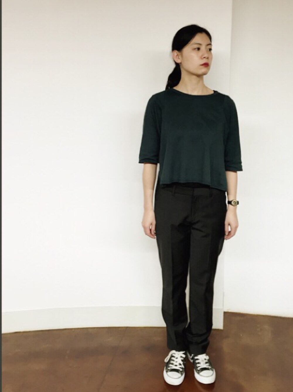 シンプルコーディネート。 ちょっとカッチりめな組み合わせ。 カットソーの丈の短さと、絶妙な袖の長さがお気に入りです☺︎