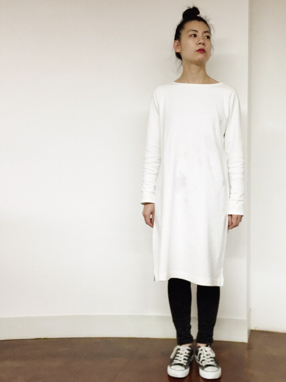 シンプルモノトーンコーディネート。 コットンワンピースの白を購入。 ゆったり着たいので大きなサイズをチョイス。 ゆるいけど、生地がしっかりしているのでお気に入りです☺︎♡