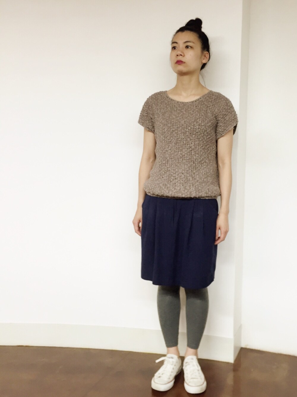形も質感もお気に入りのニットです(^ν^) ベージュと紺の組み合わせもお気に入りです◎