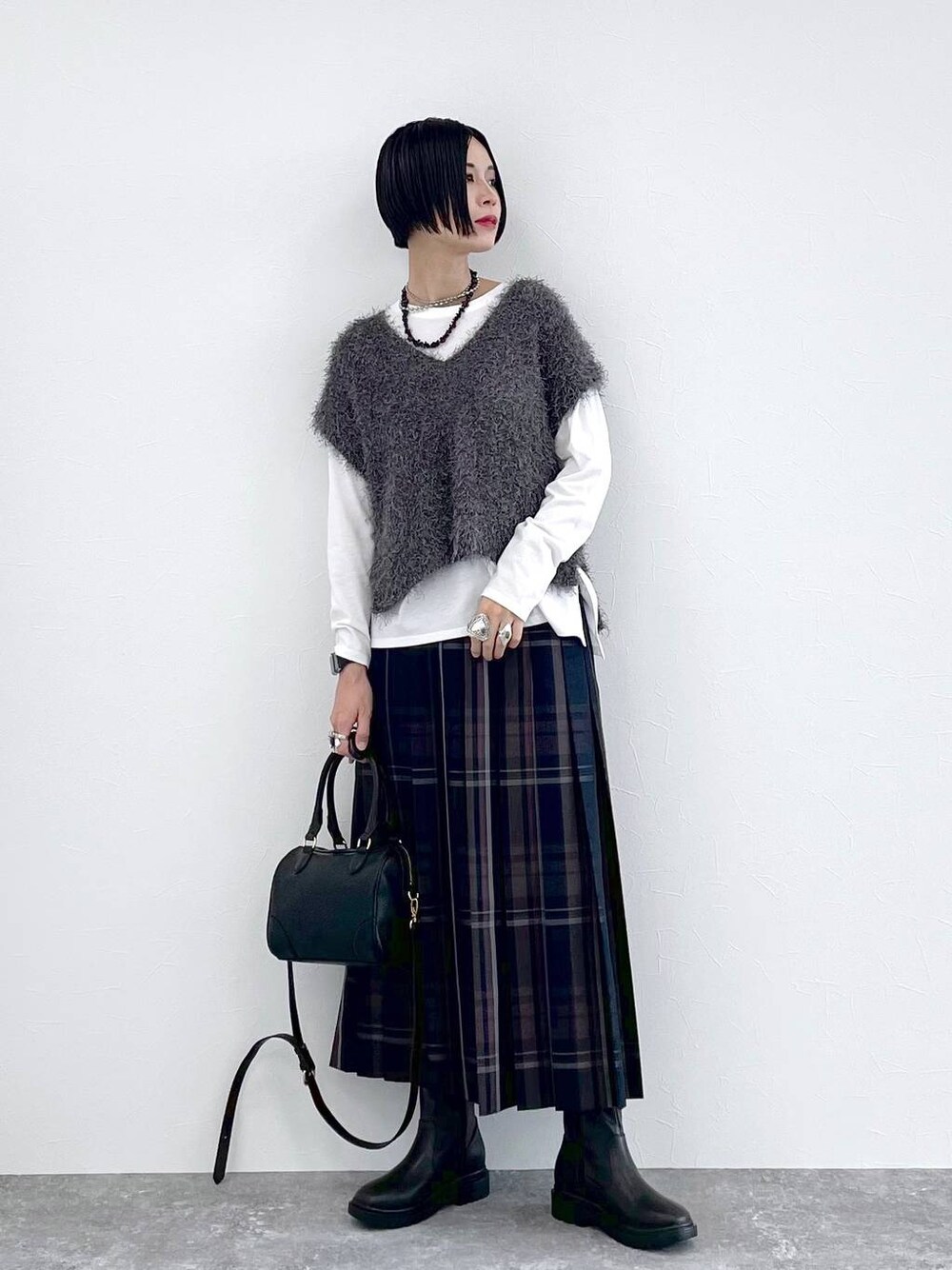 本社撮影にて新作を着させていただきました! サンプル品につきMサイズしかなくMサイズを着用していますが、同じような体型の方はLサイズがおすすめ! 着丈が選べるモケモケベストはロンTとセットなので簡単にコーデが完成! 秋冬らしいチェックスカートを合わせて大人かわいく◎ 着用アイテムの詳細は写真をタップするか、 ↓↓ 下の 使用アイテムへ ↓↓ 【インスタグラムもやってます】 シンプルでお洒落見えするコーデを更新中! サイズ感やコーディネートの仕方などコメントやDMをぜひぜひ✨ フォローもしていただけたら嬉しいです♡ ▶︎