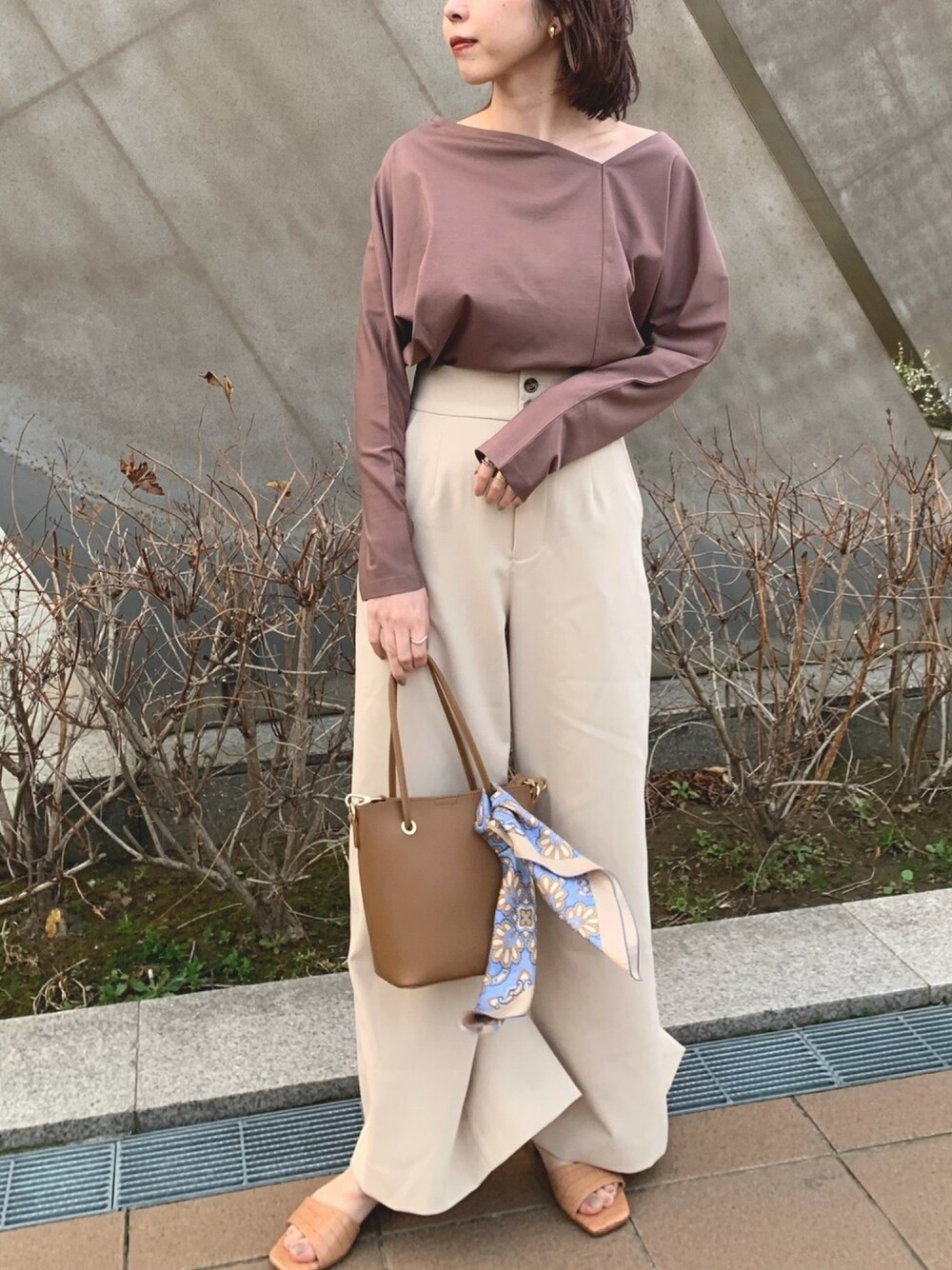 ニュアンスカラーコーデ♡ パンツはハイウエストでスタイル良く見せてくれます🙋♀️ instagram[mana___817] よろしくお願いします🕊
