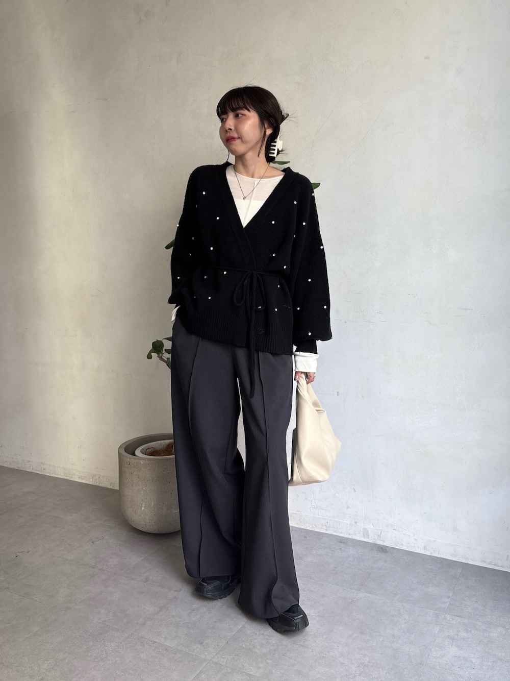 mana_lemage(CAPRICIEUX LE'MAGE)のカーディガン/ボレロ「ビジューラップカーディガン」を使ったコーディネート