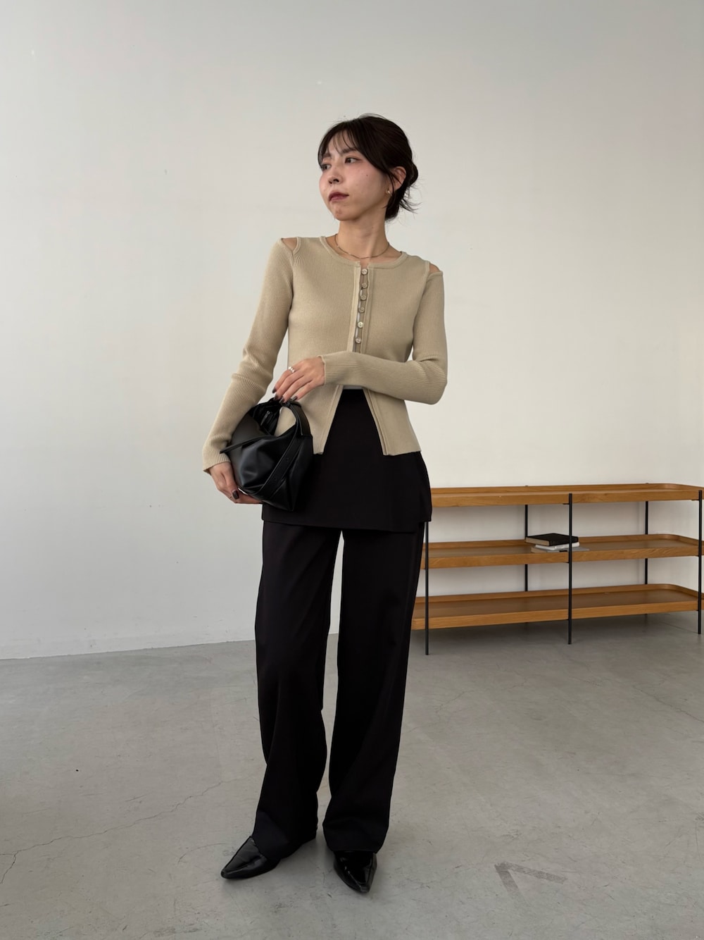 mana_lemage(CAPRICIEUX LE'MAGE)のカーディガン/ボレロ「肩開きセッパボタンカーディガン」を使ったコーディネート