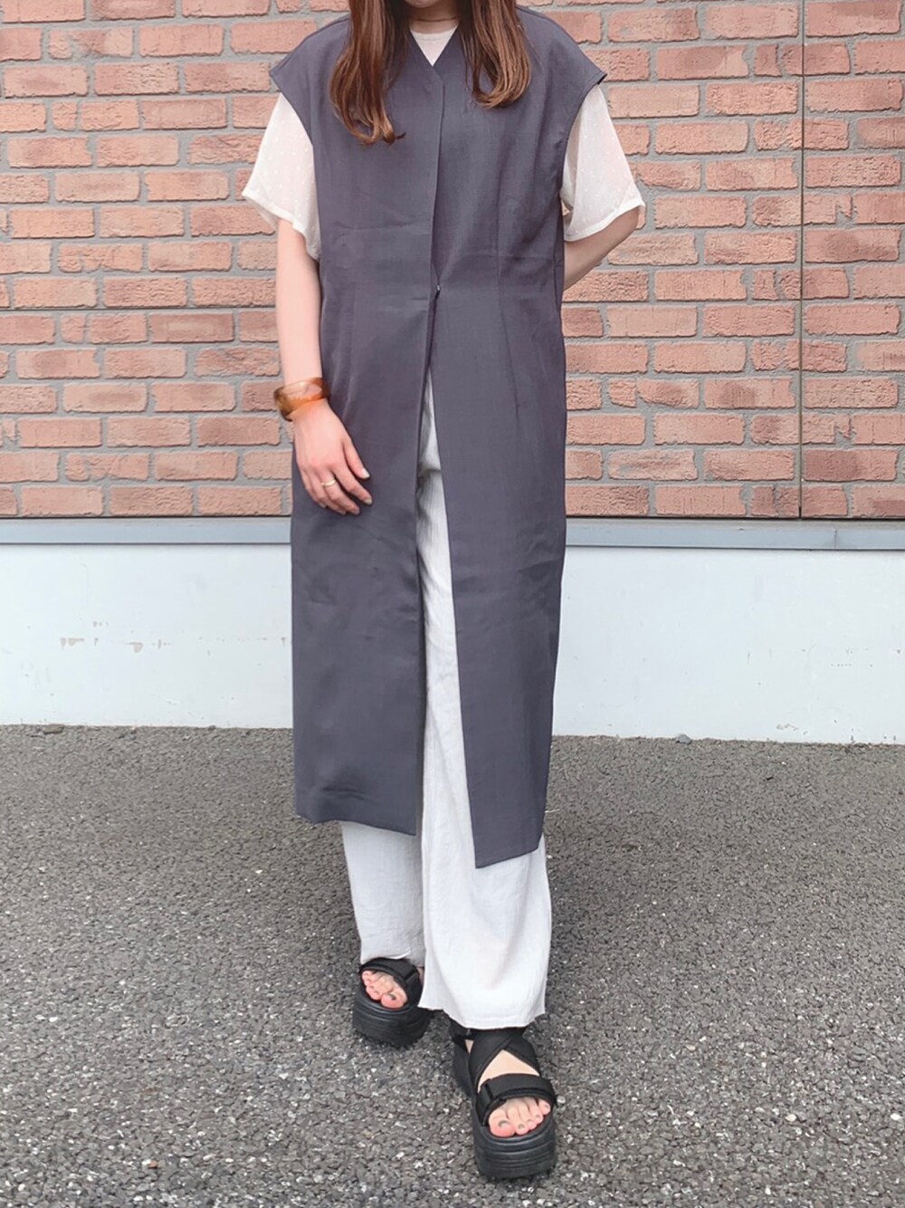 ノースリーブコートを使った大人夏コーデ! 中にはシアー感のあるブラウスと合わせて女性らしさをプラスしました◎ ○セットシアーブラウス 【着用カラー/サイズ】 IVO/FREE 【サイズ感】 ゆったりとしているサイズ感です! 【素材感・着心地】 シアー素材なので涼しくきていただけます! インナーのキャミソールもセットになっているので透ける心配なく着ていただけます。 ドットの模様が可愛いです◎