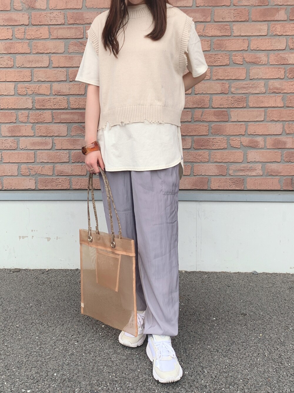 mana(warehouse 佐野プレミアムアウトレット)のベスト「ダメージニットベスト」を使ったコーディネート