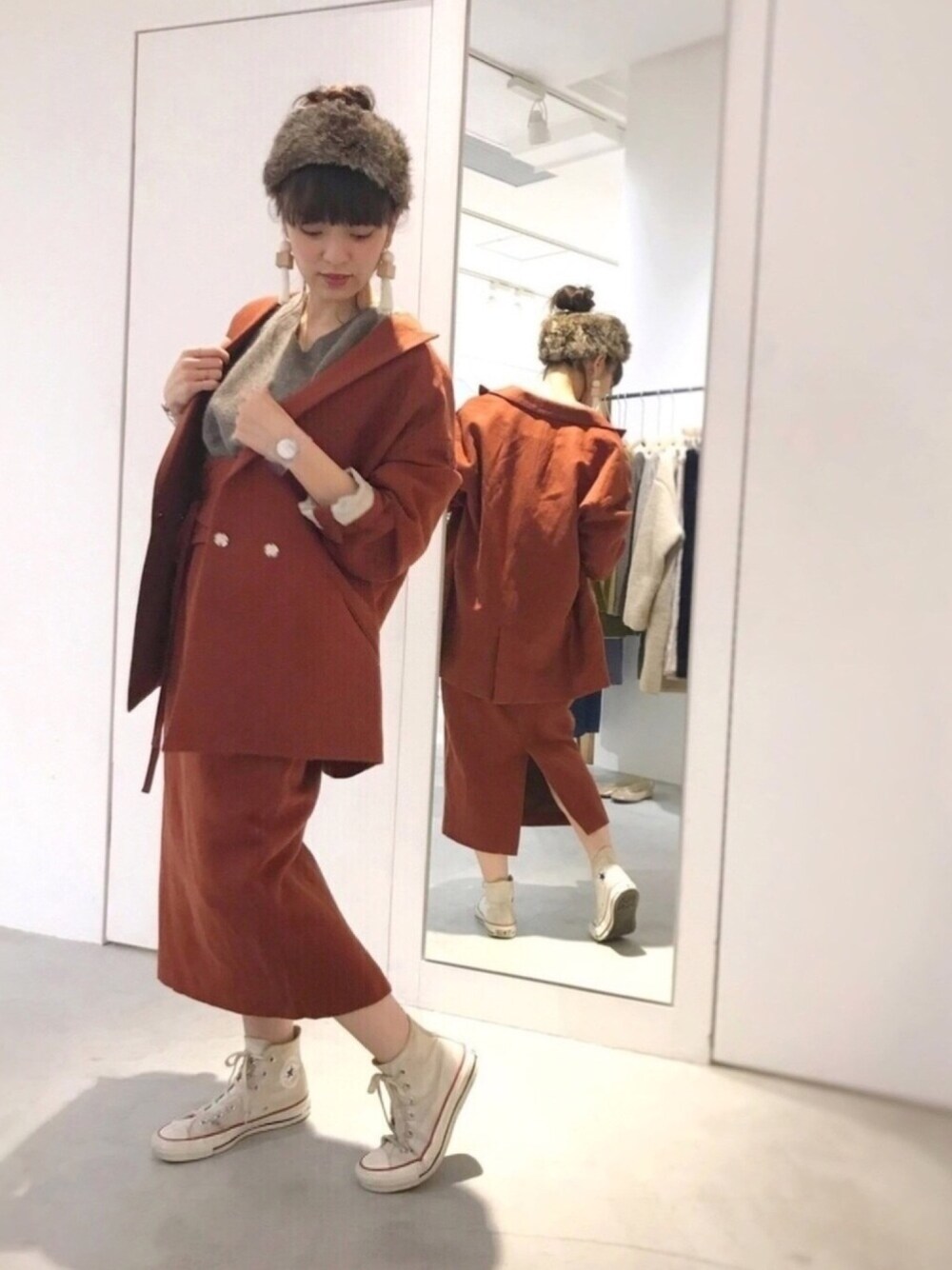 展示会で一目惚れした rukkilill のセットアップ。 今年は とにかく ジャケットが、着たくて サイズ感 色ともに ◎ 会社のクリスマス会で 着る予定です♡ 出勤すたいる。 2017 A/W