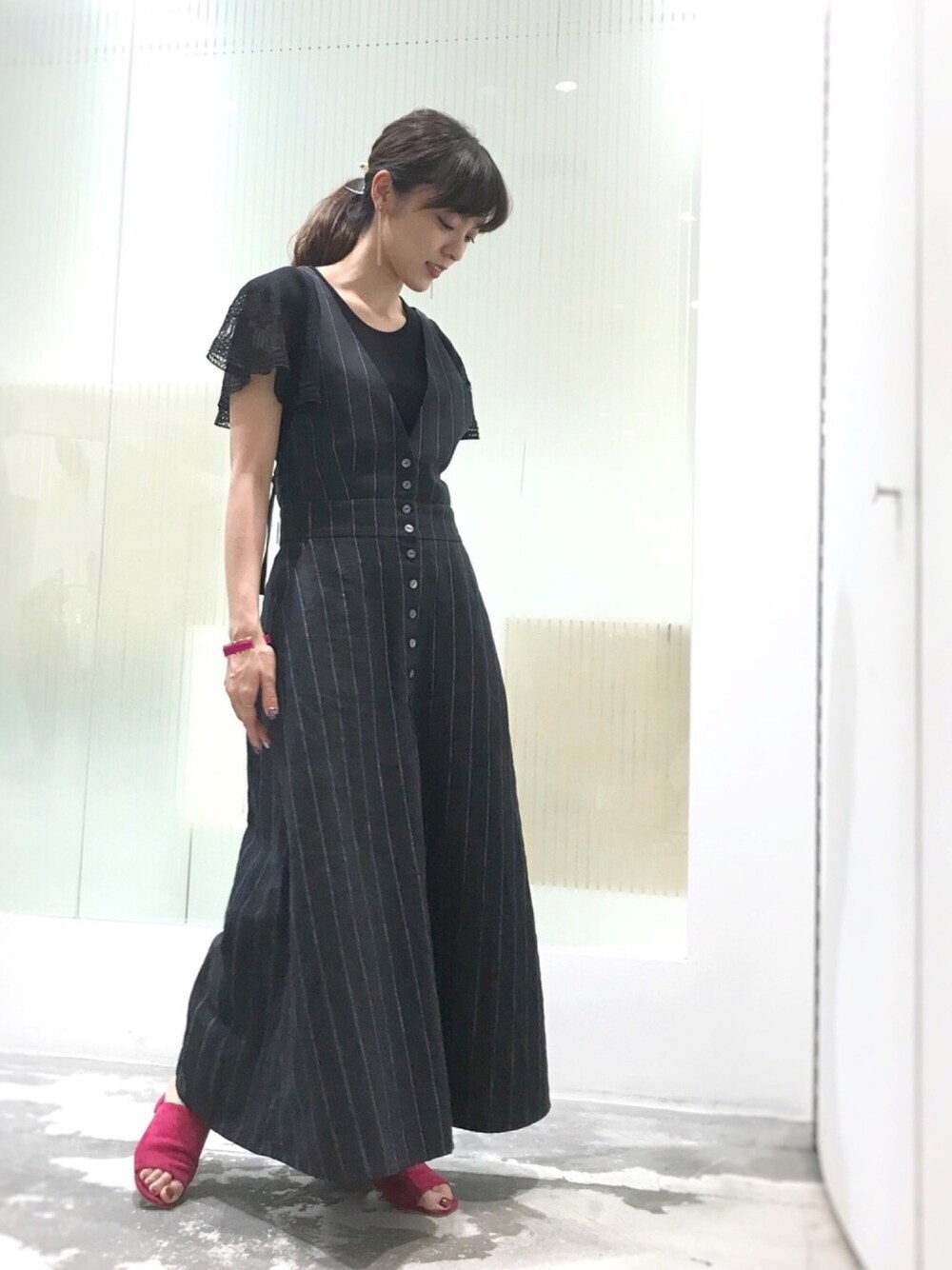 まなのジャンパースカート「L/C グレンストライプ ホルターネックキャミO.P.」を使ったコーディネート