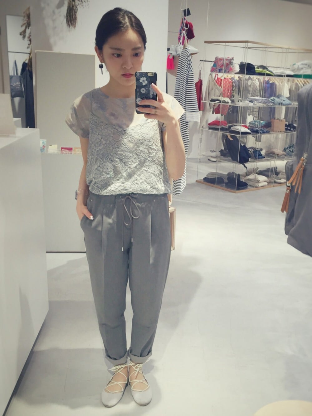 コードレースキャミの 可愛さがたまらなくて、 色違いで 2枚目♡ 出勤すたいる。 2016 S/S