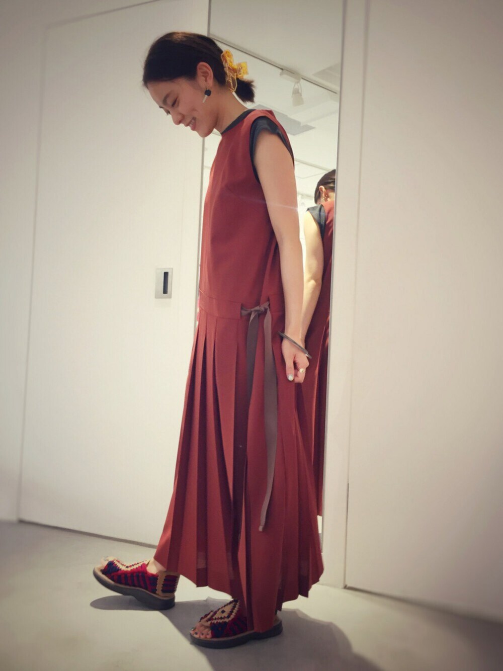 まなのワンピース「T/W HIGH TWIST ロングプリーツOP」を使ったコーディネート