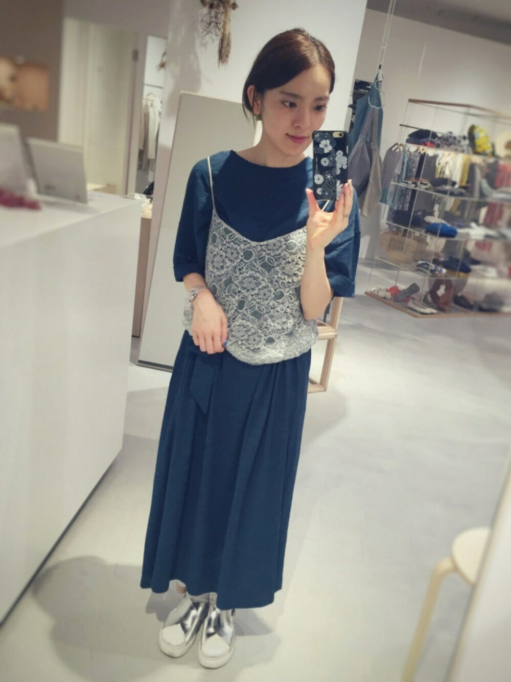 まなのキャミソール「R/Nコードレース ペチキャミ」を使ったコーディネート