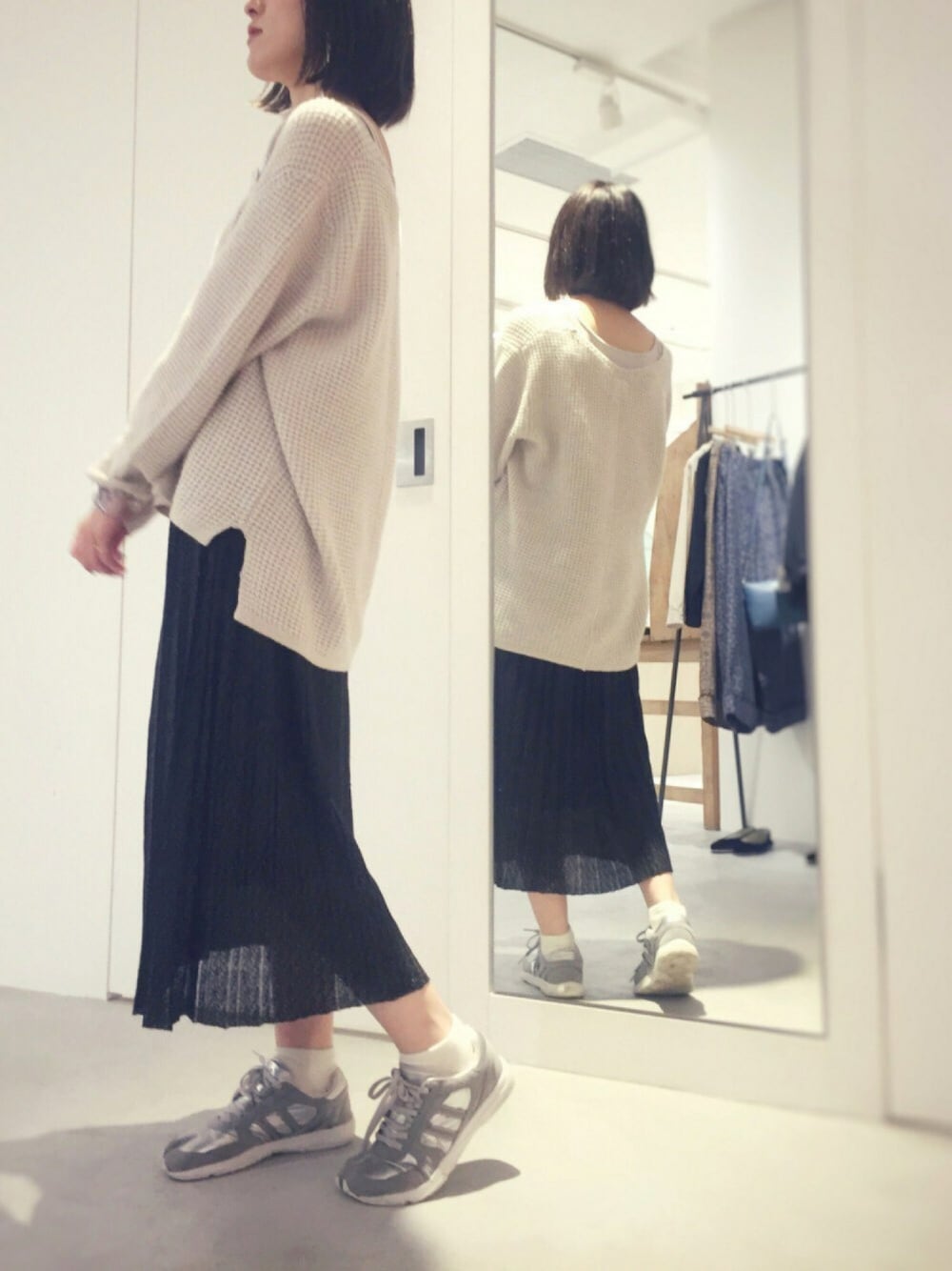 まなのスカート「Nancy × Sukeru ジャガードプリーツSK」を使ったコーディネート