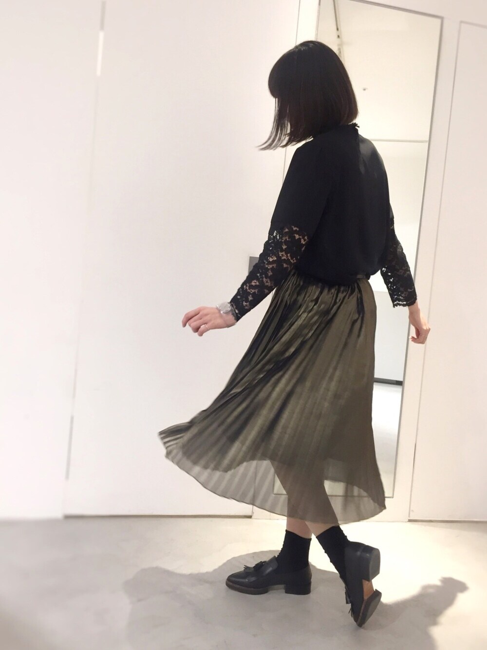 久々にメタリックプリーツスカートを 履いたけど、やっぱり可愛い♡♡ 寒くても気分は春です♪♪ 出勤すたいる。 2017 s/s
