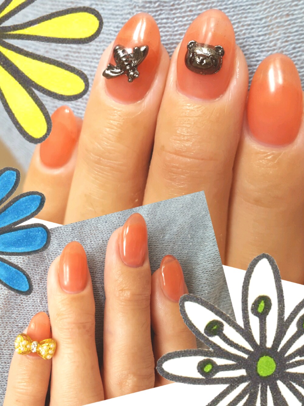 ジェルだけで終わるつもりが、可愛いクマとハチとリボンが目に留まって、結局付けちゃったwww