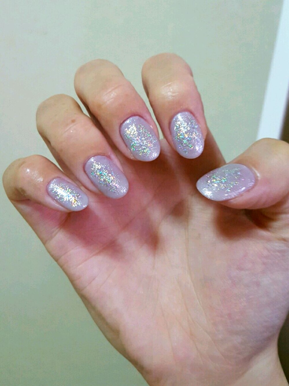 今回は涼しげなネイルにしてみました。 わかりずらいのですが、ベースは淡いパープルなのです。