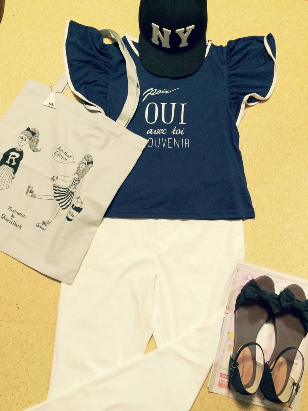 最近GETした里奈ちゃんとマジェコラボTシャツ(*´꒳`*)*·˚ ༘♡ ネイビーTシャツを探しててデザインも可愛くてGET〜!たくさん着たい♡♡