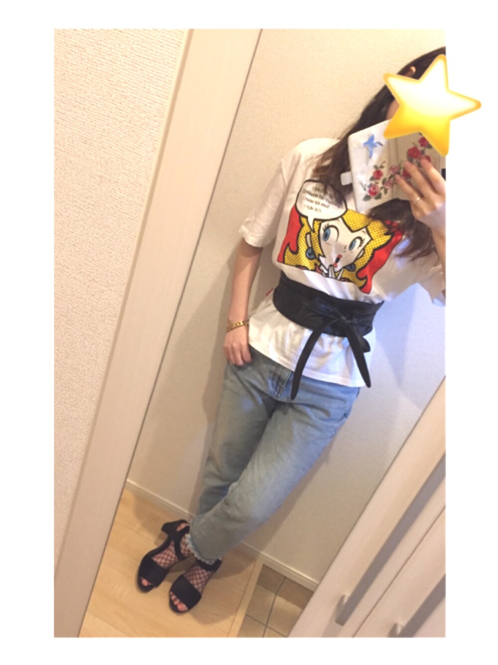 UNIQLOで購入したピーチのTシャツ👸🏼💗 げきかわです! 最近、イーハイフンのサンダルばっかり。