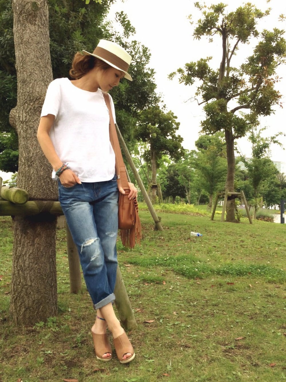 昨日のコーデ‼︎ ハットはその辺で売ってる激安ちゃん👍✨ ungridのバッグは春先に一目惚れで買って…使えずにいたけど、 やっと使えたーッ😭❤️ 意外に物が入る優れもの✨ 奥にポイ捨てされてるペットボトルが気になる…。 ポイ捨ては…ダメよーッ🙅 では…♡