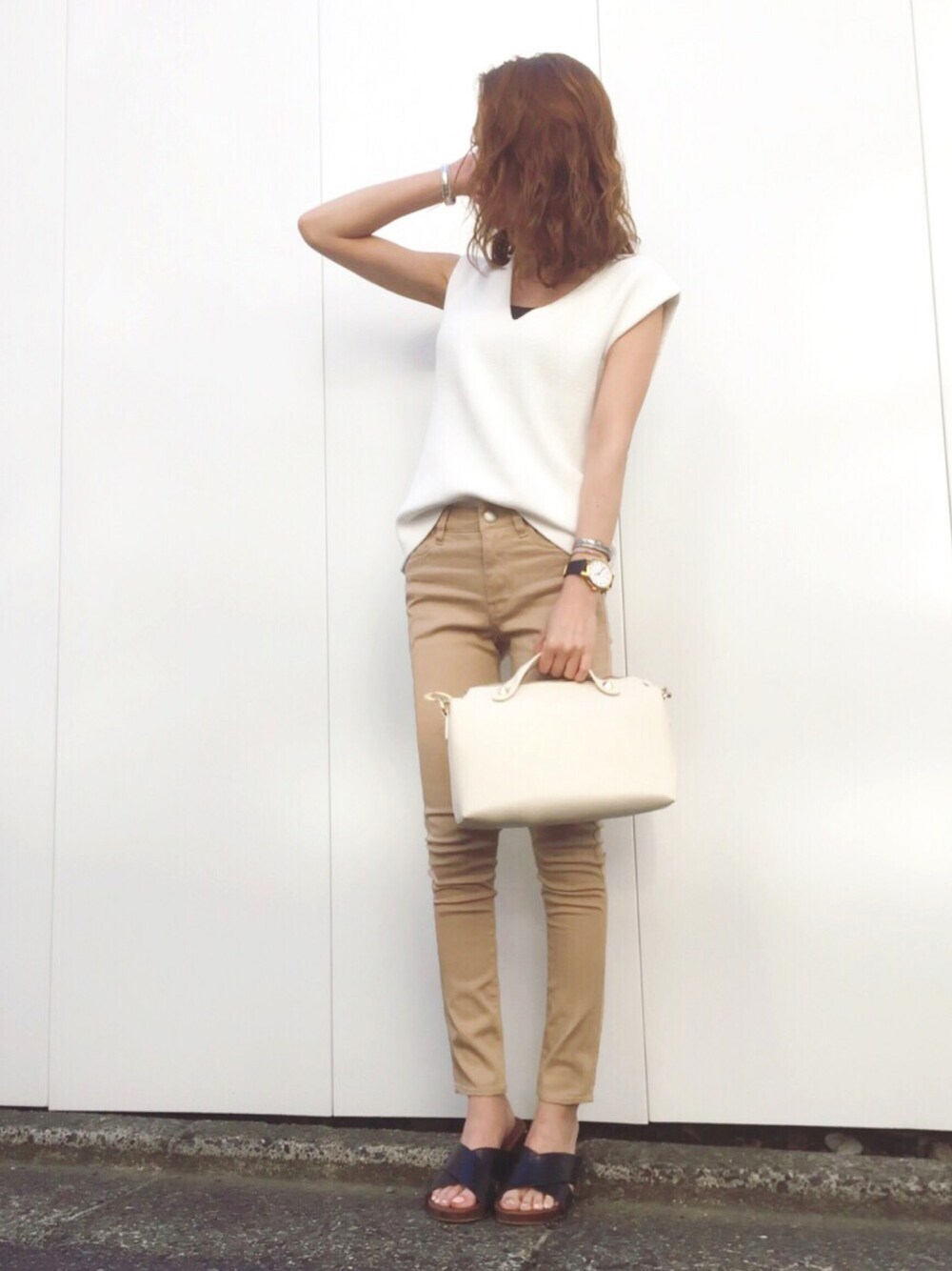 manaのタンクトップ「Vネックニットタンク」を使ったコーディネート