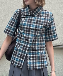 Instagram▶︎@_manafuku_#ブラウス#ブーツ#チェックシャツ#ミニスカート#デニムスカート#チュニック#プリーツスカート#キャミソール#バギーパンツ#夏コーデ#PR#韓国ファッション#シティーガール