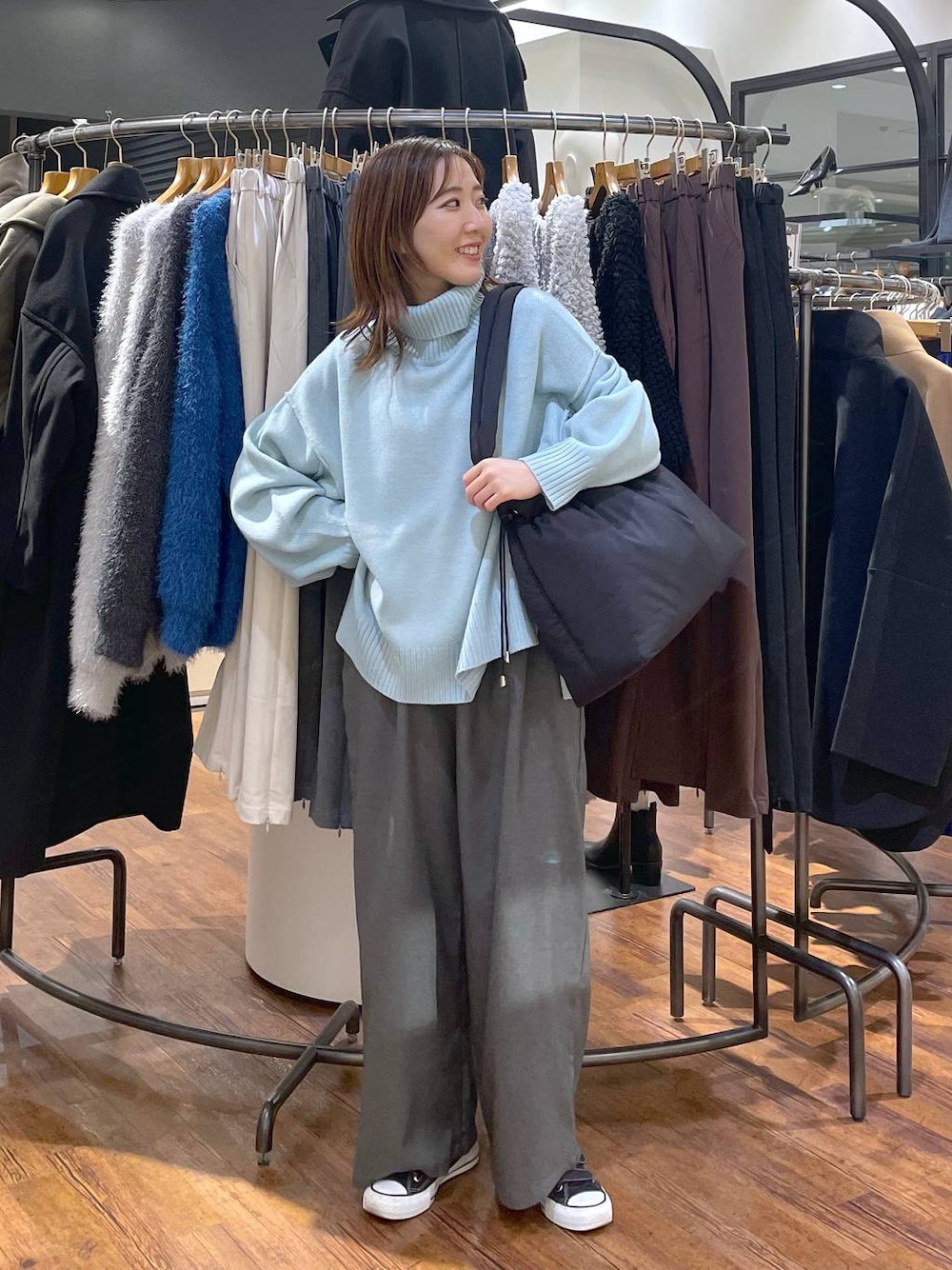 mana(LEPSIMステラタウン)のニット/セーター「7ゲージタートルプルオーバー 183616」を使ったコーディネート