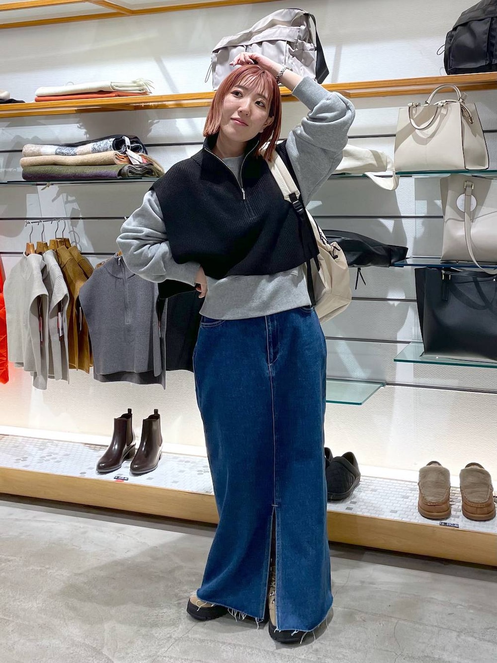 mana(LEPSIMステラタウン)のニット/セーター「7ゲージハイネックZIPケープ 907024」を使ったコーディネート