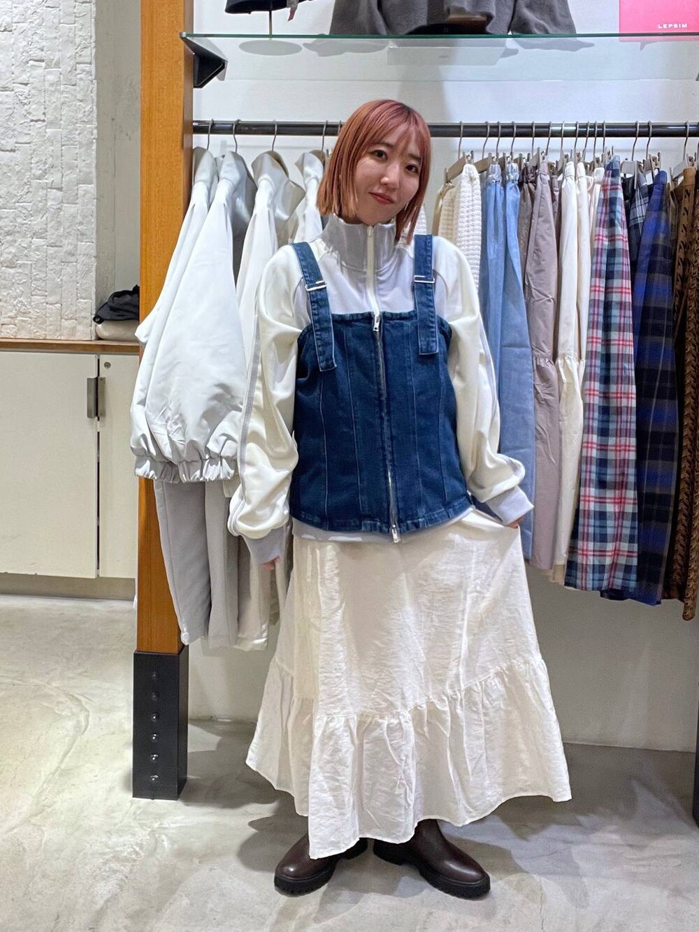 mana(LEPSIMステラタウン)のスカート「【jours heureux】シャイニー切り替えフレアスカート 100719」を使ったコーディネート