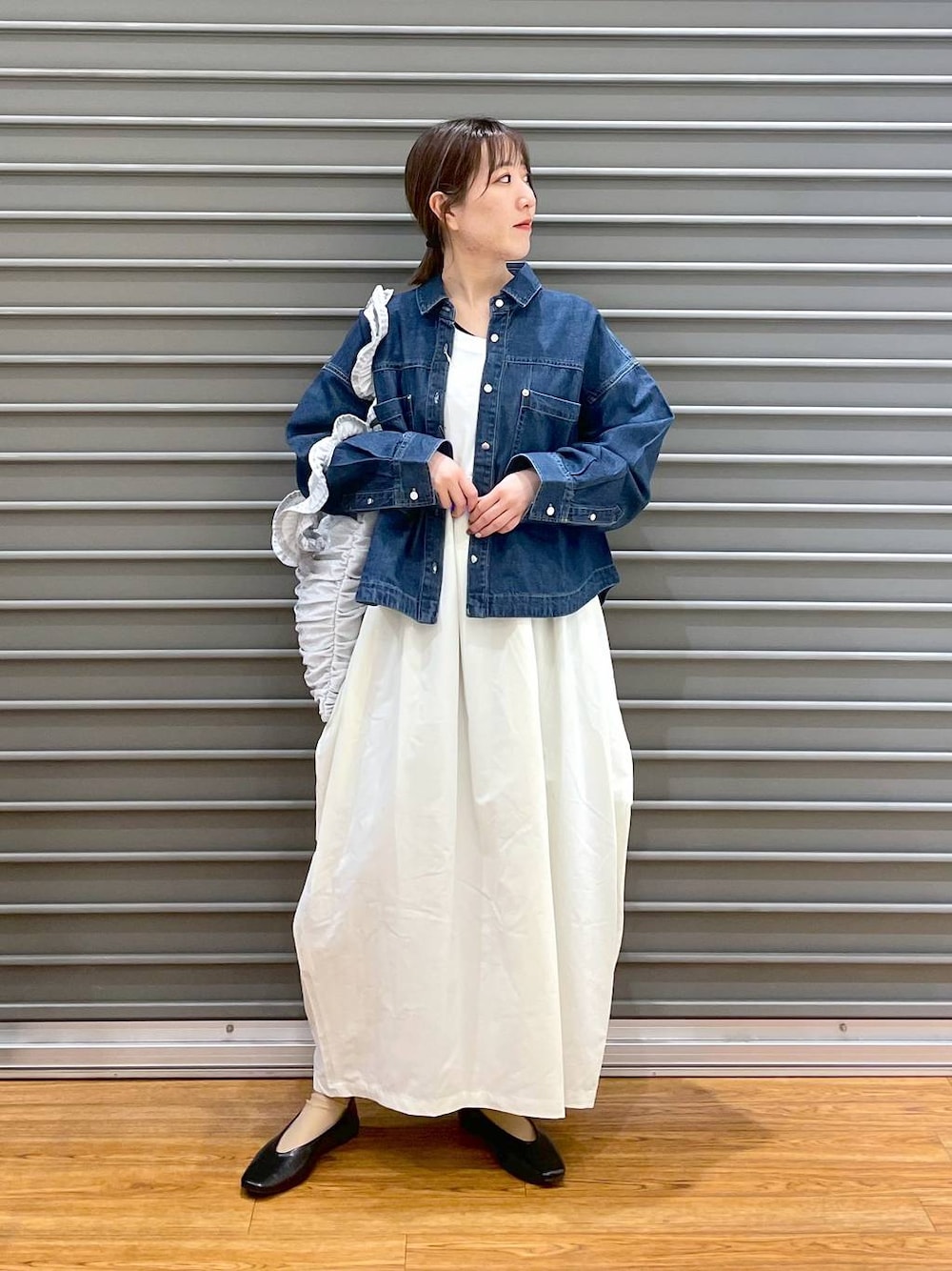 mana(LEPSIMステラタウン)のトートバッグ「ラメフリルハンドルトート 105943」を使ったコーディネート