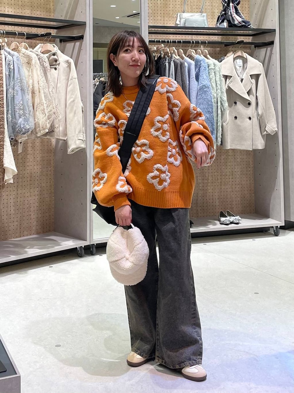 カラー苦手だけどこのオレンジは可愛くて 着てみましたー! 立体感のあるお花柄がポイントになってかわいい♡ Instagram ▷ maaaana_kd ✿*:.。. .。.:* ✿*:.。. .。.:* ✿*:.。. .。.:* ***毎日更新中*** ご質問はから☺︎ コーデがいいと思ったらフォローお願いいたします🙇♀️ ✿*:.。. .。.:* ✿*:.。. .。.:* ✿*:.。. .。.:*