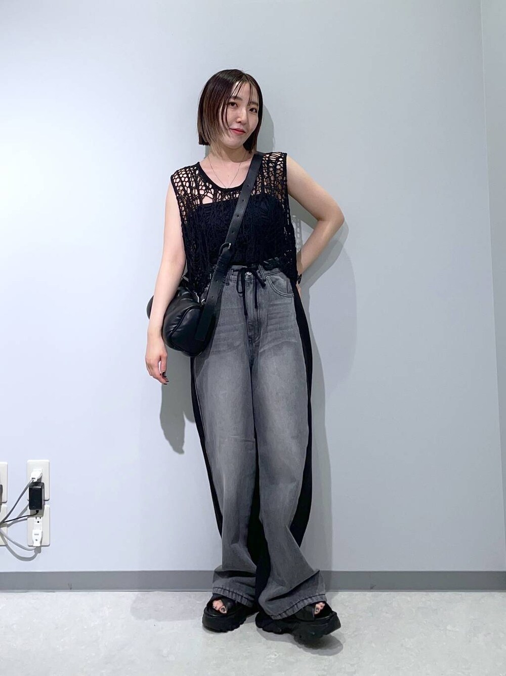 リアルバイしたデニム! ウエストは紐で調整できるので問題なし◎ 丈は長いので、5cm以上のヒールや厚底がオススメです。