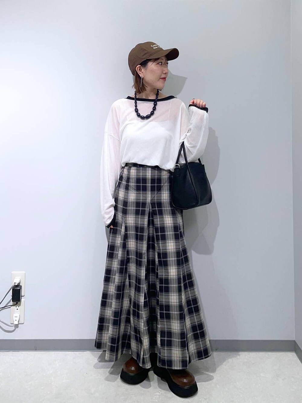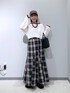 秋はシアーロンtが一番使えます!! リンガーTはモードやカジュアルにも使えてより便利◎ スカートは153cmで折らずに穿けるフリーサイズ🔥 なかなかないので、低身長さんオススメですよ💡