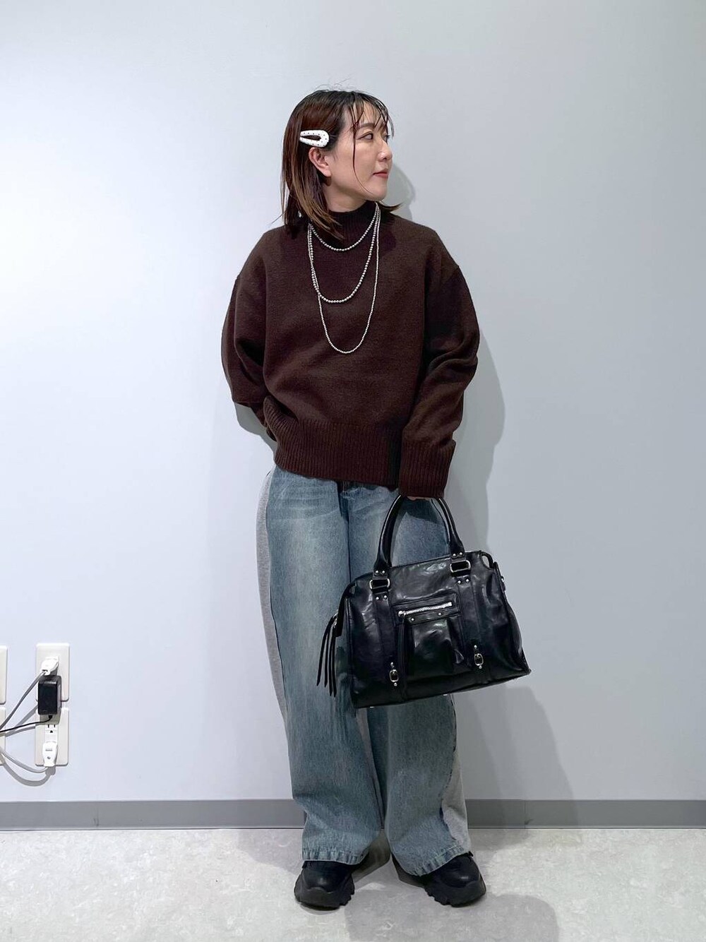 mana(LEPSIMステラタウン)のネックレス「3連ボールネックレス 287544」を使ったコーディネート