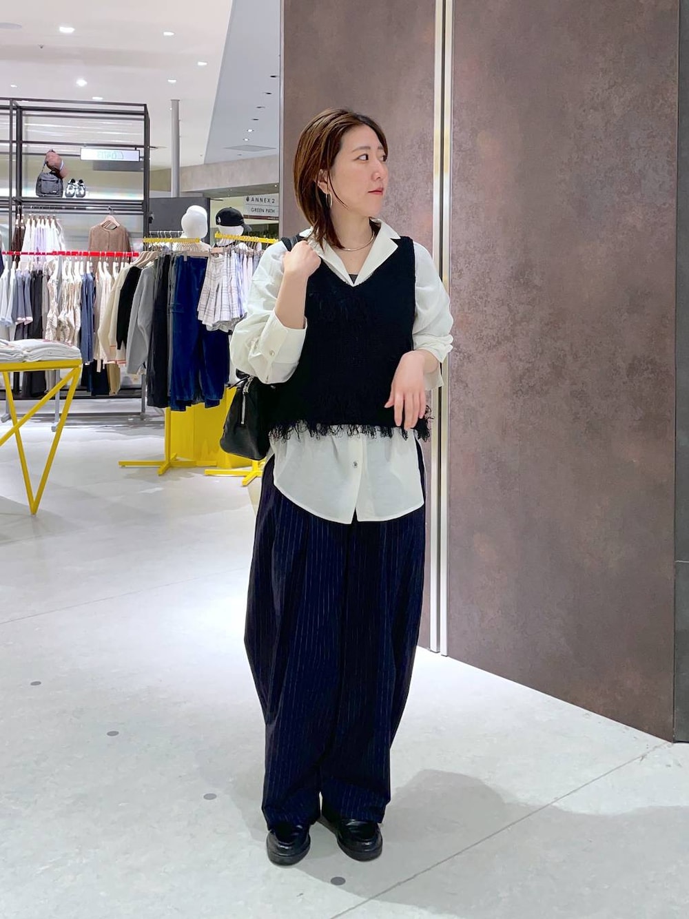 mana(LEPSIMステラタウン)のショルダーバッグ「スペ軽ロングスクエアバッグ/646421」を使ったコーディネート