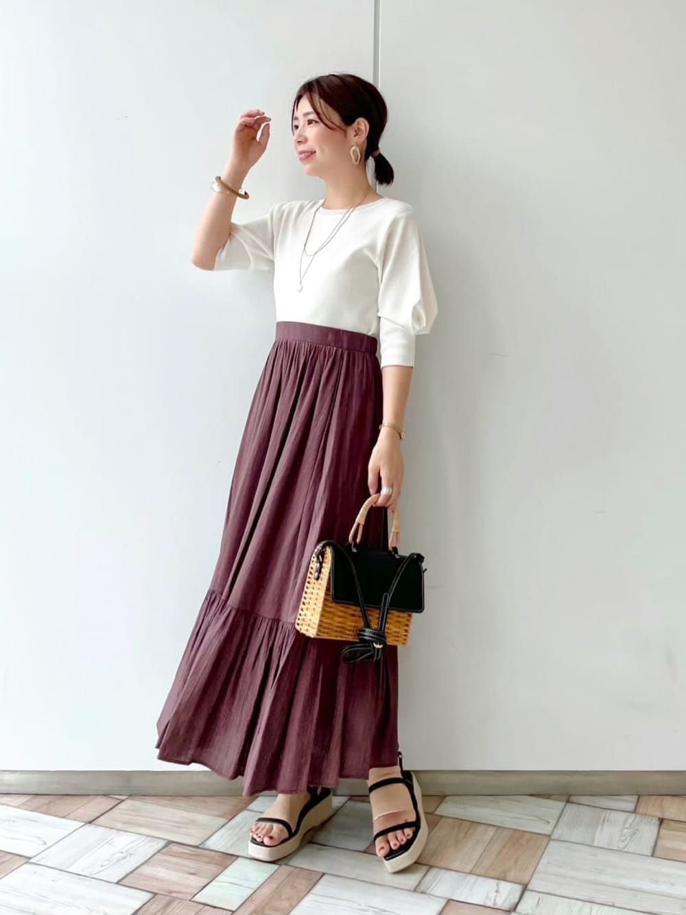 ご覧いただきありがとうございます☺︎ 【トップス】カットソー感覚で気軽に着られるサマーニット。 Tシャツは苦手…という方でもカジュアル過ぎず品良く着られる優秀アイテム♩ ボトム次第でON/OFF兼用で使えるのも嬉しいポイント! 【スカート】春に大好評だったティアードスカートが新色追加で再入荷。 手洗い可なのも嬉しいポイント! レーヨンが入っているので汗をかいてもサラッとした着心地で夏まで気軽に着ていただけます。 155cmで写真のような長さなので、 低身長さんにもオススメのスカートです。
