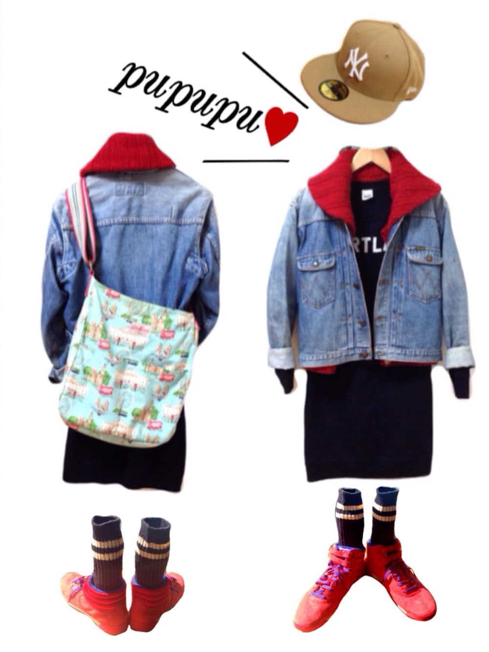 *knit// felissimo *one p// felissimo デニムジャケットは旦那が 15年くらい愛用してるラングラー♡ 90年代のデザインなのかな?? アメカジっぽく着たいわけですよ☺︎ あ〜リュック欲しいなぁ 笑*