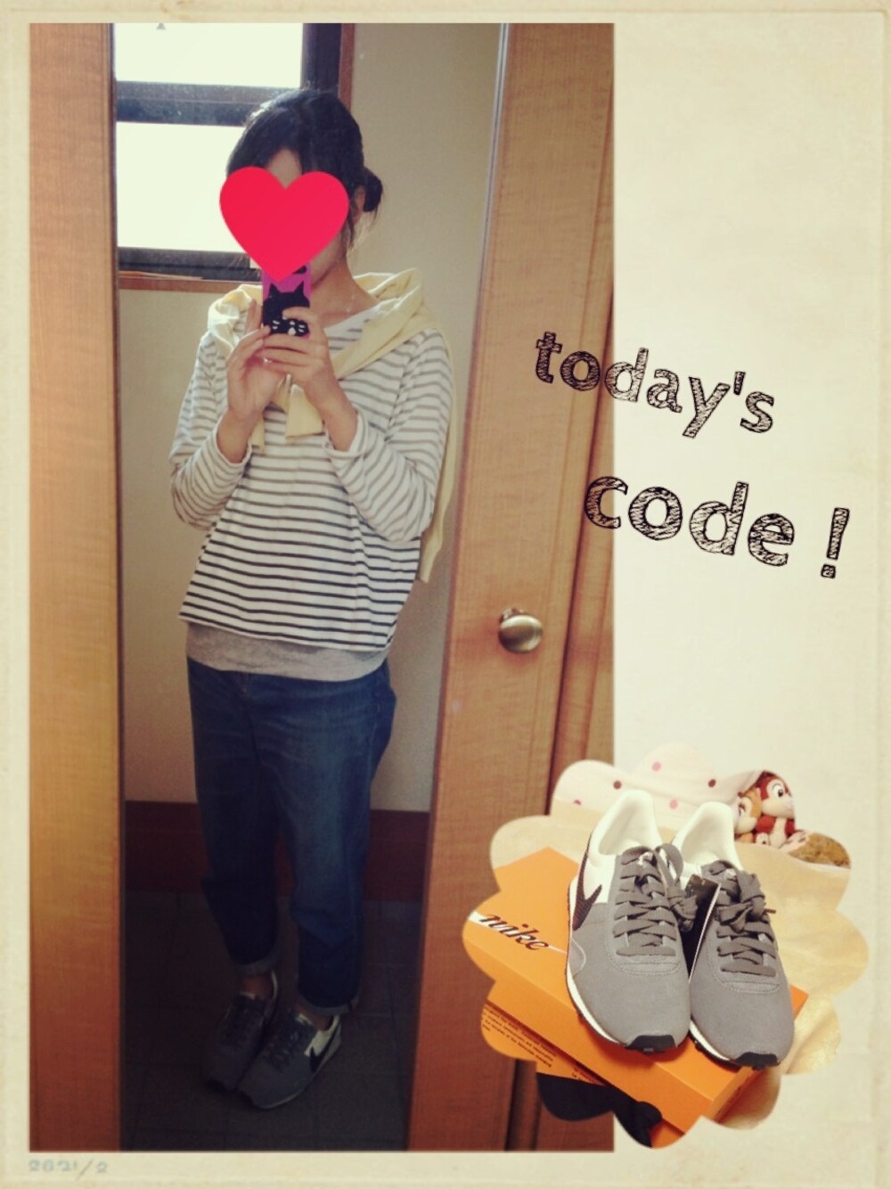today's code ! 2014.05.22 ☻ カットソー:niko and... タンクトップ:GLOBAL WORK カーディガン:UNIQLO デニムパンツ:LEPSIM ソックス:靴下屋 スニーカー:NIKE
