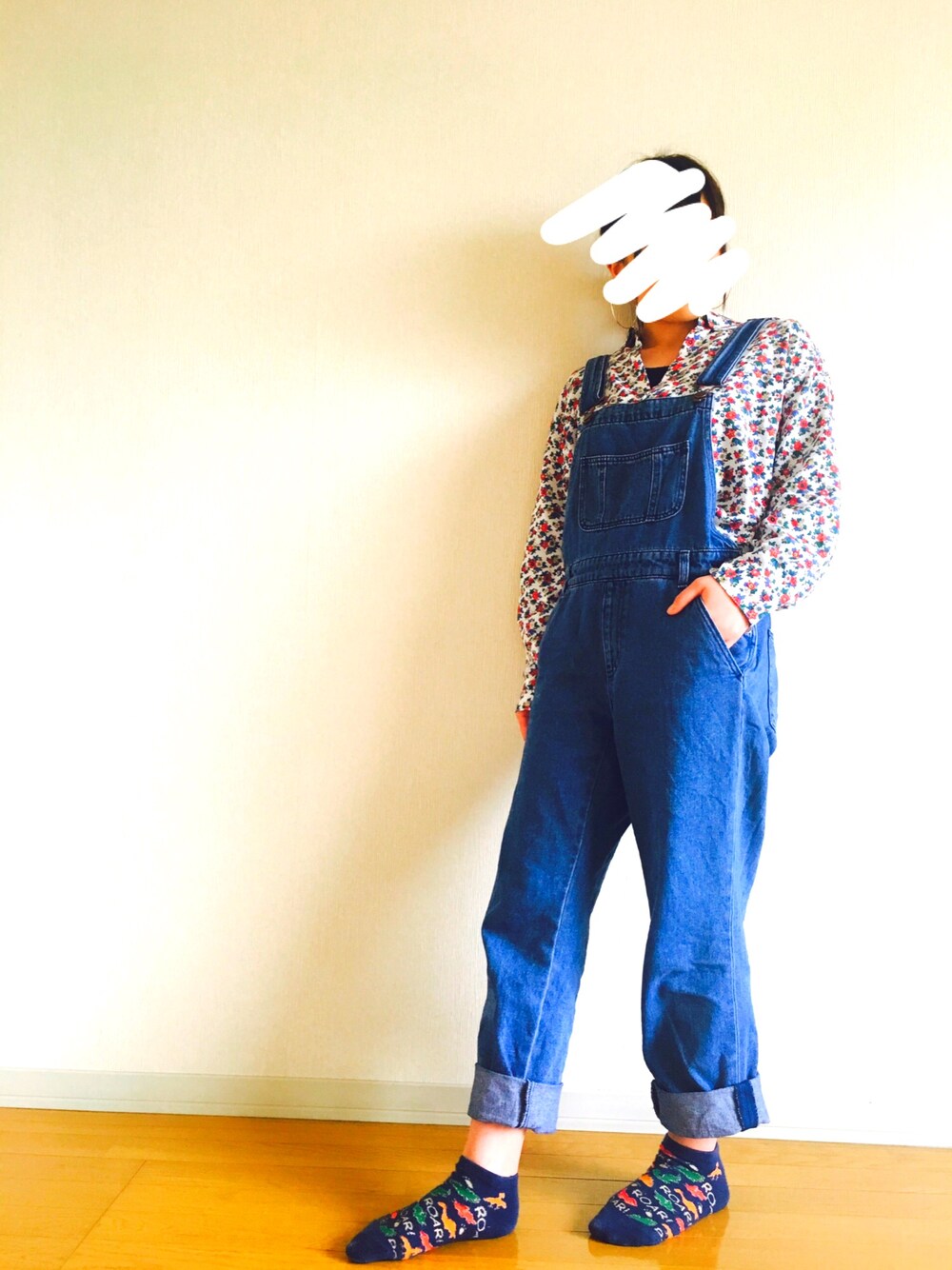 🌸春らしいコーディネートにしてみました🌸 トップスをトレンドの花柄にして、 サロペットと合わせました👗