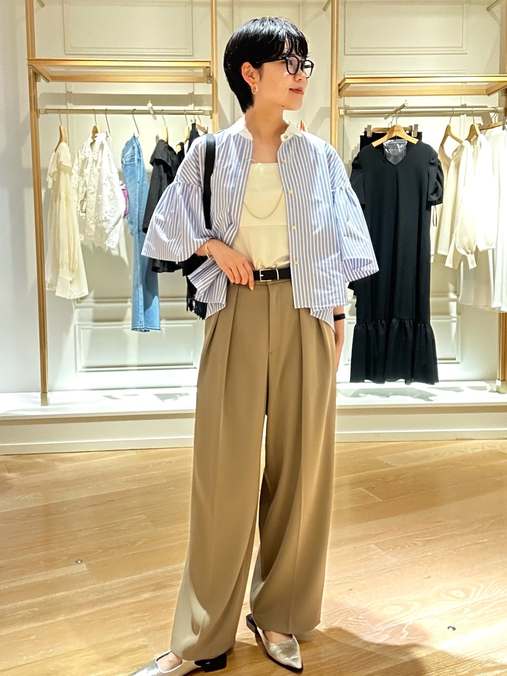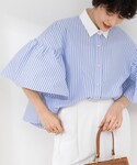 袖のボリューム感がポイント!! 一枚で着映えするブラウスです✨ ボタン外してベルトを見せて着ると甘さも控えめに◎ シワにもなりにくい素材なのでこの夏使えそうです。