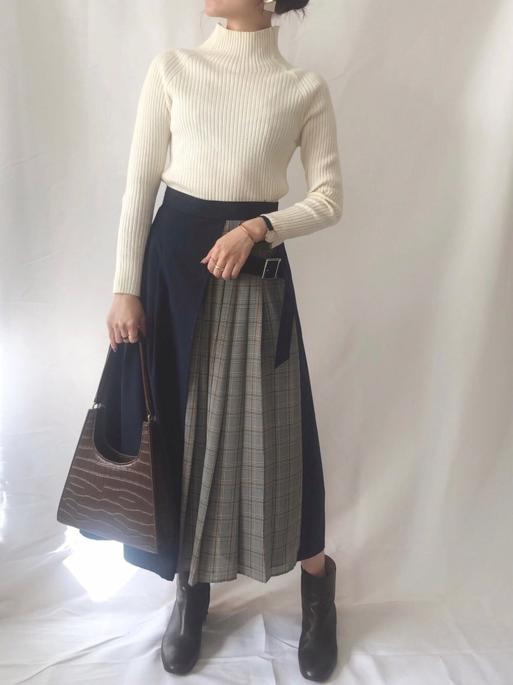 まなのんのニット/セーター「フリルハイネックリブセーター」を使ったコーディネート
