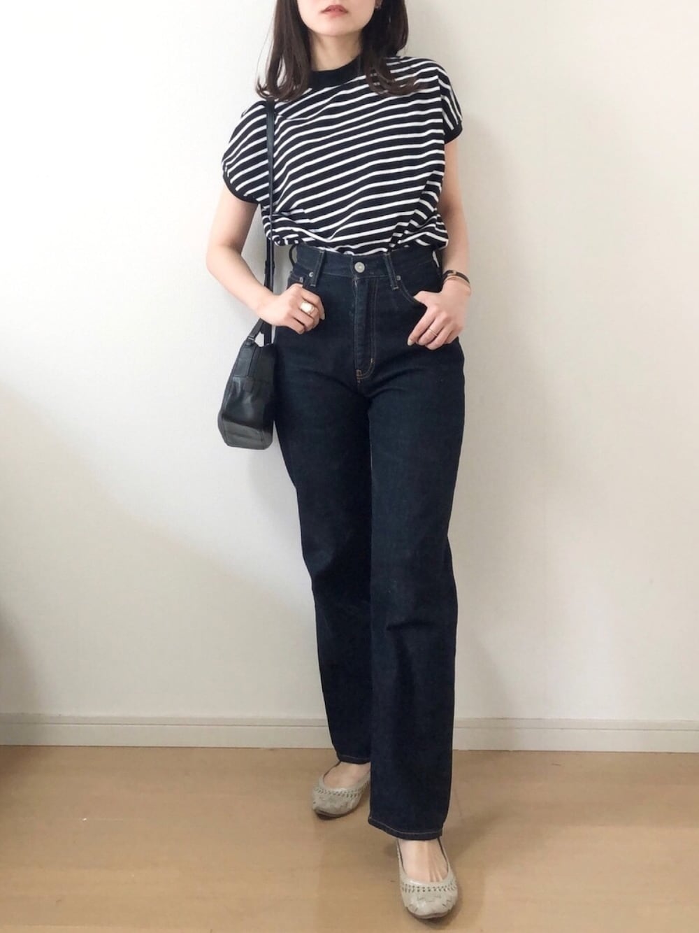 まなのんのTシャツ/カットソー「ハイネックボーダーT(半袖)」を使ったコーディネート