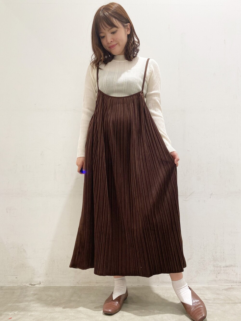 マナのワンピース「ベロアプリーツキャミワンピース *」を使ったコーディネート